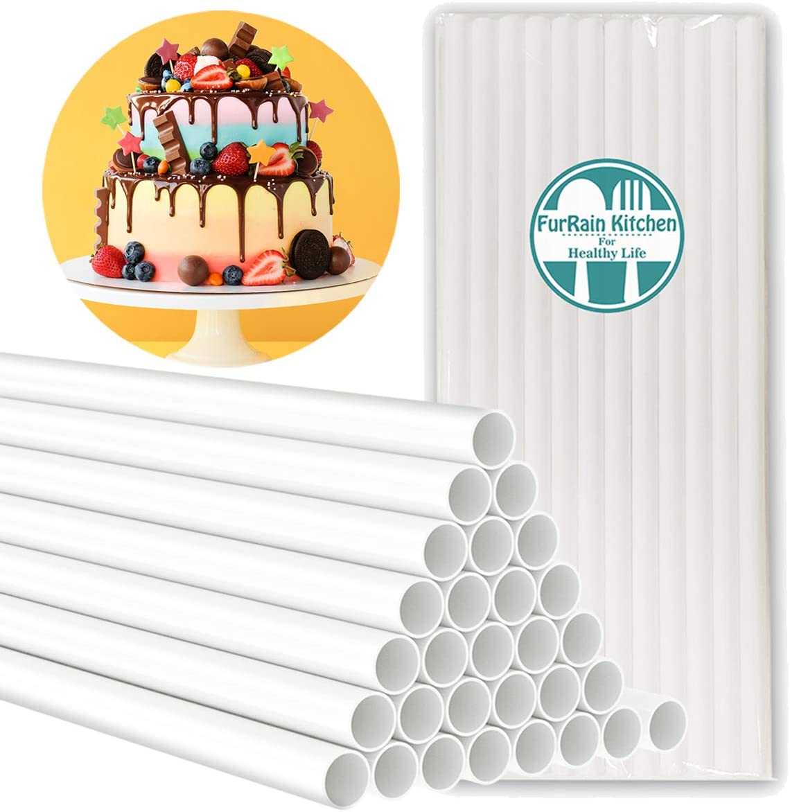 Plastic Cake Dowel Rod White Cake Dowel Rods, 0.4 Inch Diameter Support Rods for Stacking Tiered Cake Cake Sticks (12 Inch)