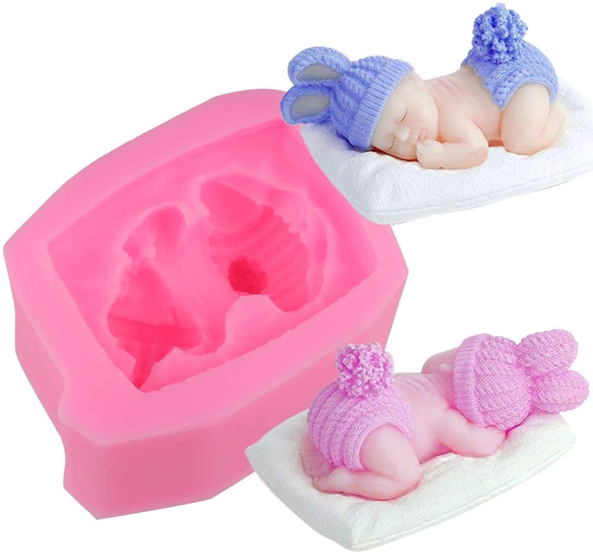 3D Sleeping Baby with Pillow Fluffy Hat SIlicon Mold قالب سيليكون ثلاثي الأبعاد لطفل نائم مع وسادة وقبعة منفوشة