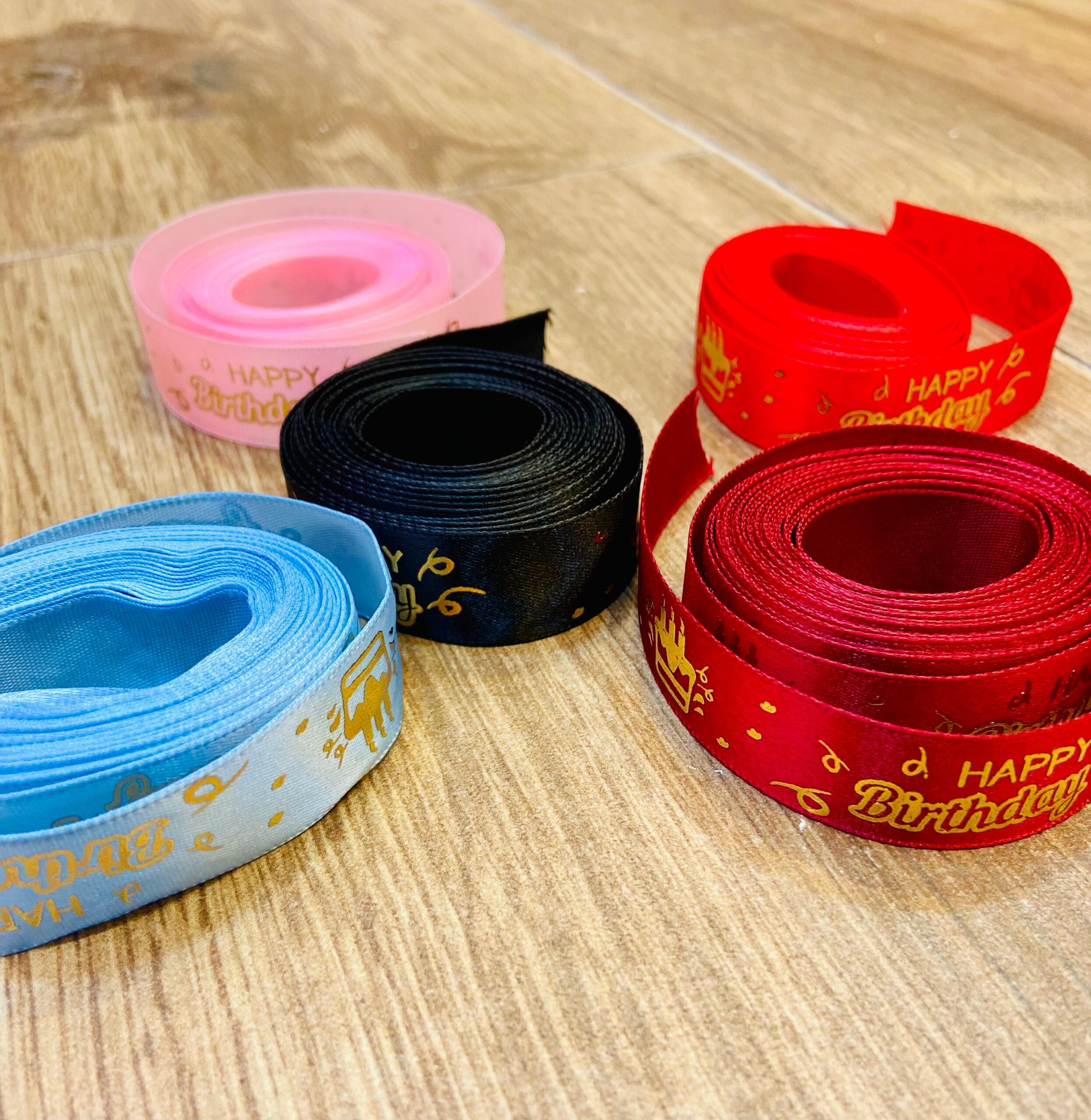5 Yards Birthday Printed Satin Ribbon Assorted Colours شريط مطبوع لعيد الميلاد