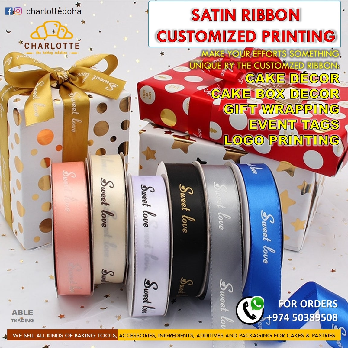 Personalized SATIN RIBBON 10 Meter شريط ساتان شخصي بطول 10 متر