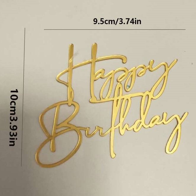 Happy Birthday Small Acrylic Gold Side Topper غلاف جانبي ذهبي صغير من الأكريليك لعيد الميلاد السعيد