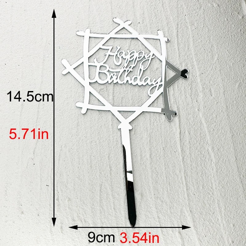 Happy Birthday Topper Acrylic Star Silver عيد ميلاد سعيد توبر الاكريليك نجمة فضية