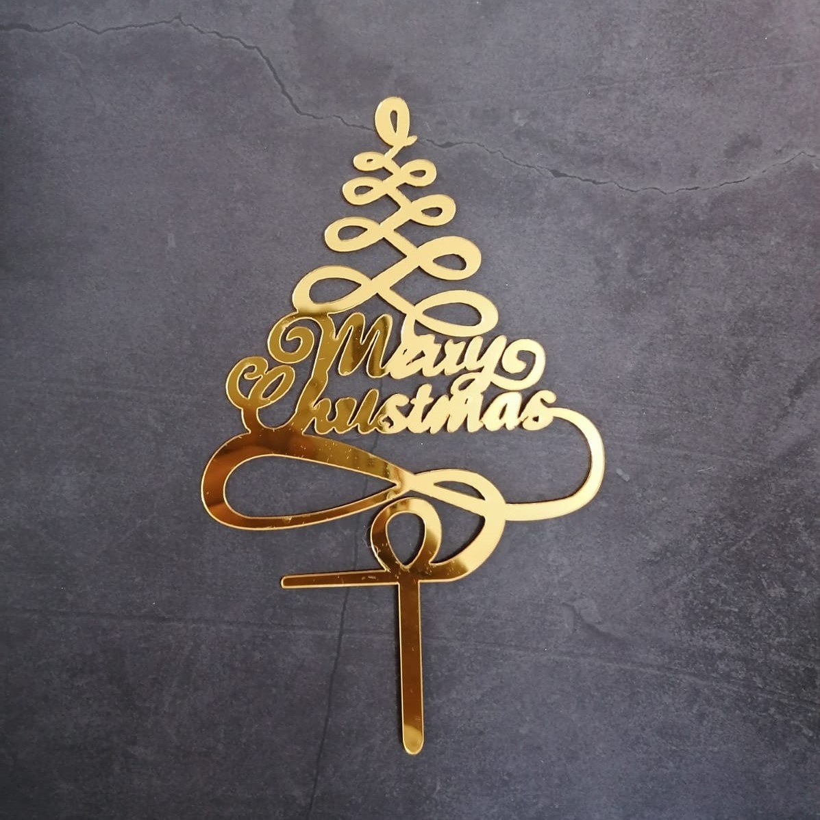 Merry Christmas cake Topper GOLD (tree shape) تغريسة كعكة عيد الميلاد المجيد ذهبي (على شكل شجرة)