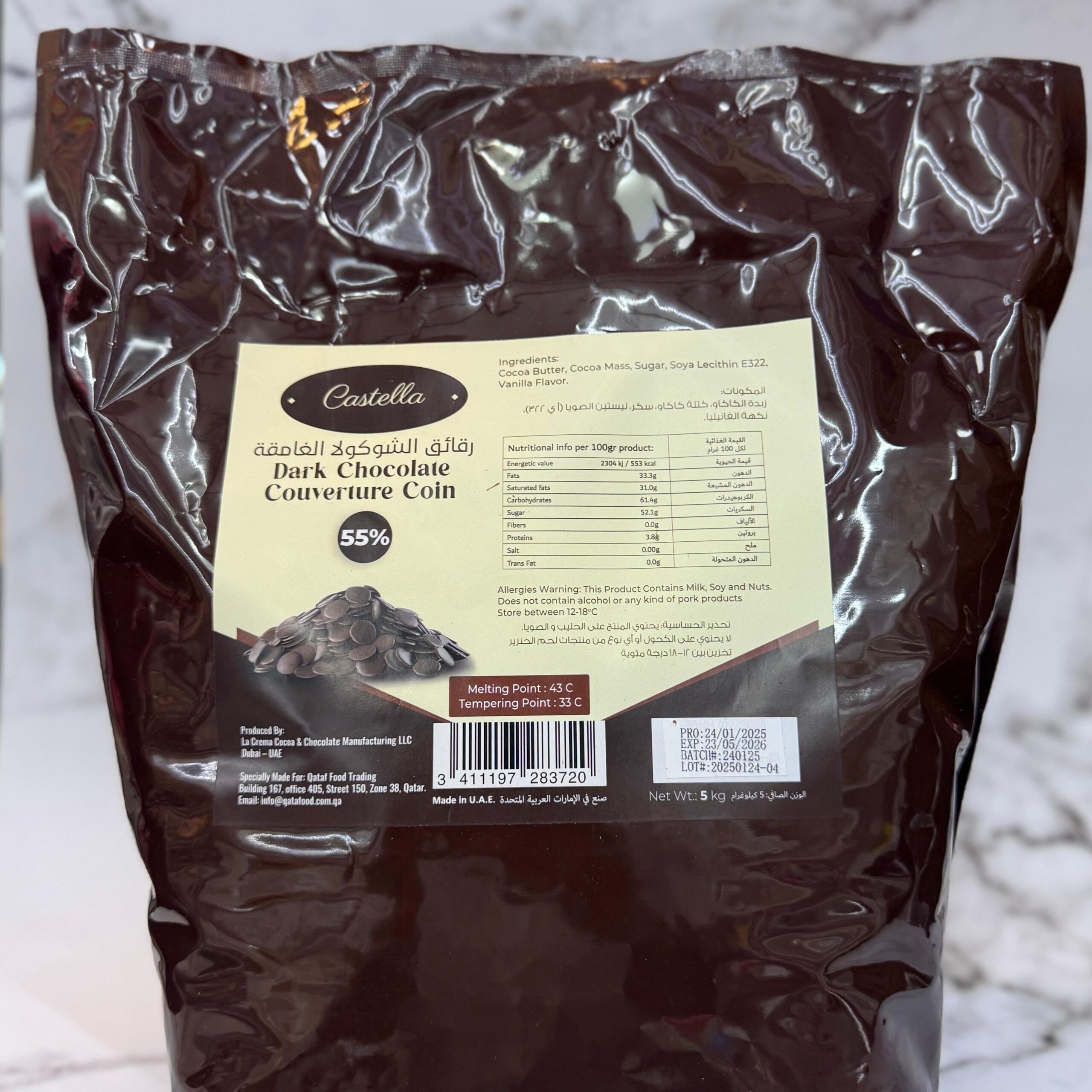 Castella Dark Couverture Chocolate Coins 55% (5KG)