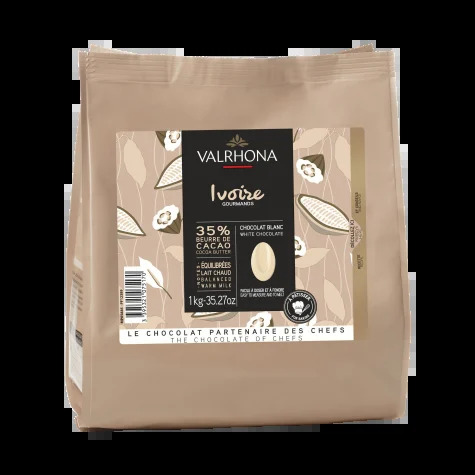 Valrhona Ivoire 35% Coverture White Chocolate Feve 3kg Bag كاليتات شوكولاتة الحليب