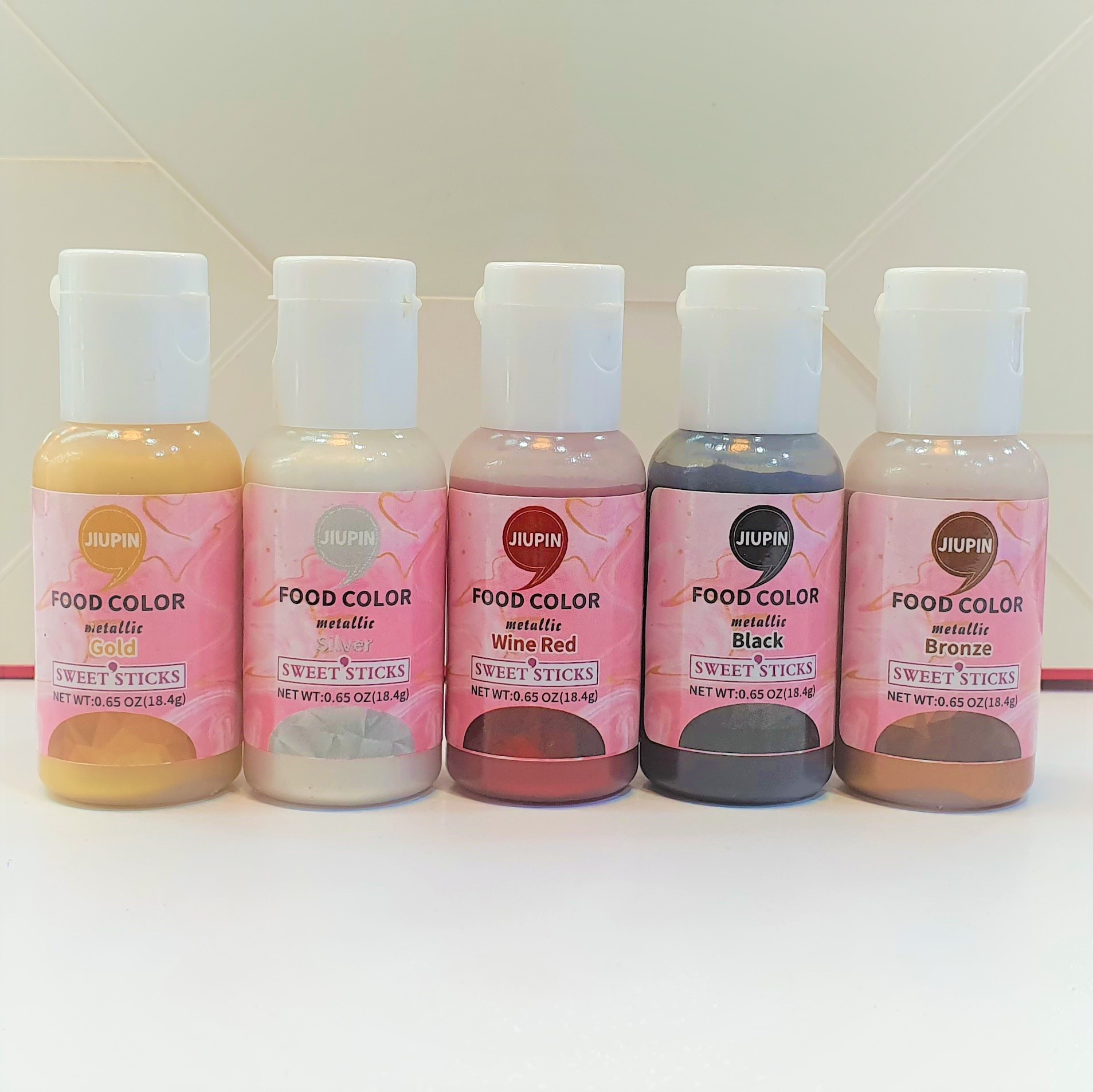 These art paints provide a beautiful metallic finish once dried, providing your projects with some extra glitz and glamour – perfect for using on various mediums including: sugarpaste and fondant, modelling paste, flower paste, marzipan, royal icing, macarons, chilled buttercream, sugar cookies, marshmallows, gold leaf, chocolate, ganache and even fruit!