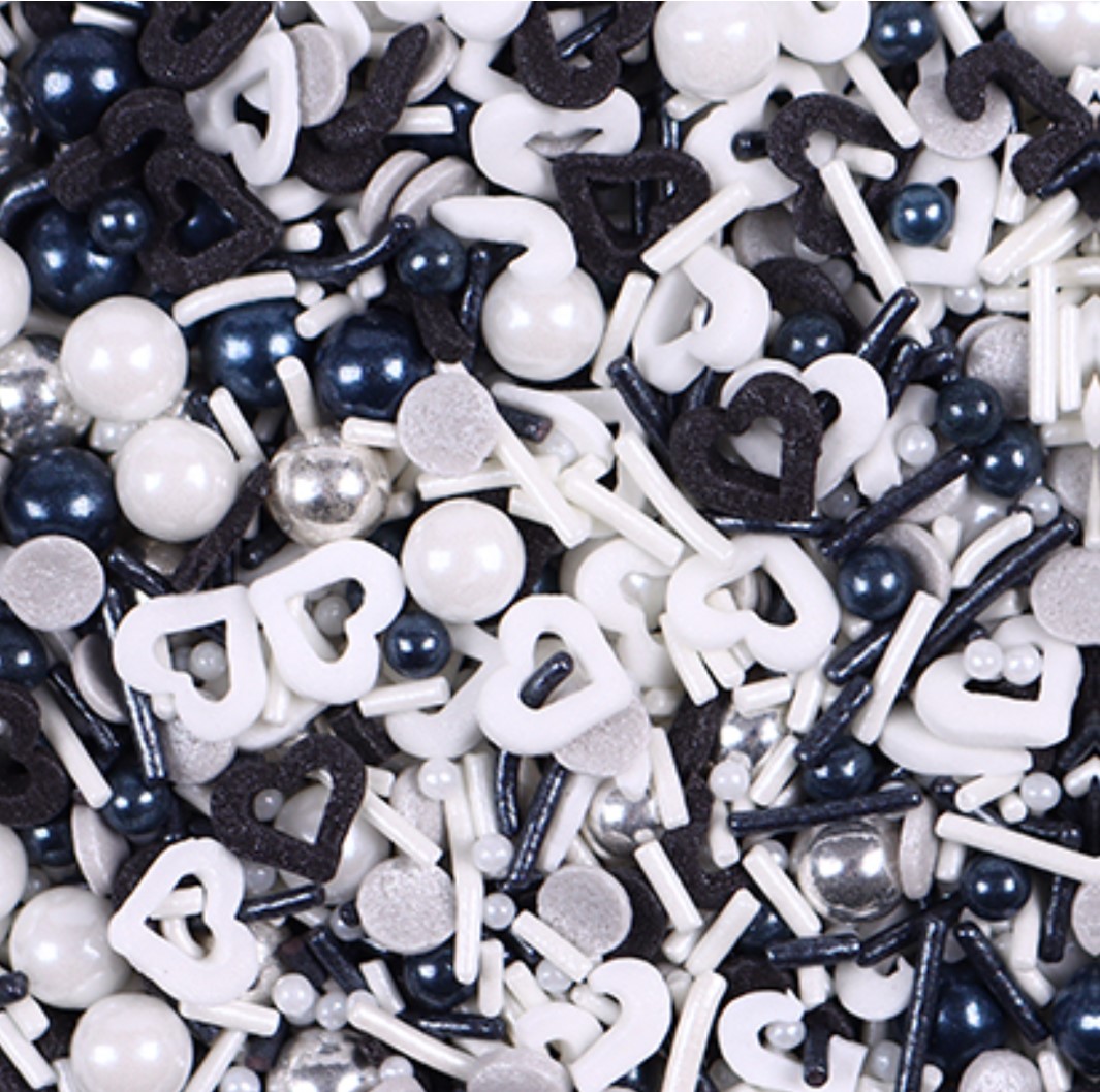 Mixed Sugar Sprinkles 50g pack (Black White silver) علبة رشات سكر مشكلة 50 جرام (أسود/أبيض)