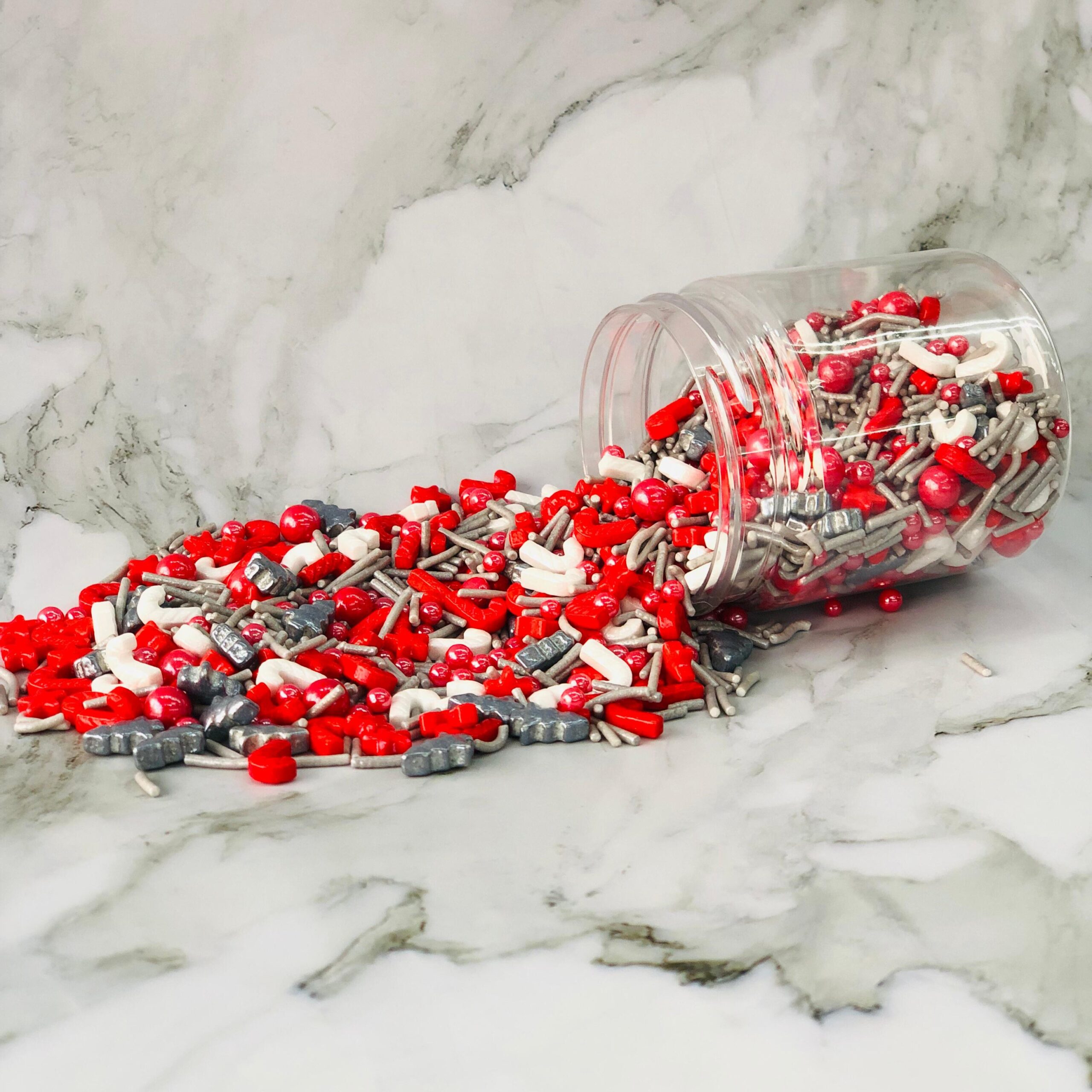 Mixed Sugar Sprinkles (Red Silver White Stars)- 50g رشات سكر مشكلة (نجوم بيضاء فضية حمراء) – 50 جرام